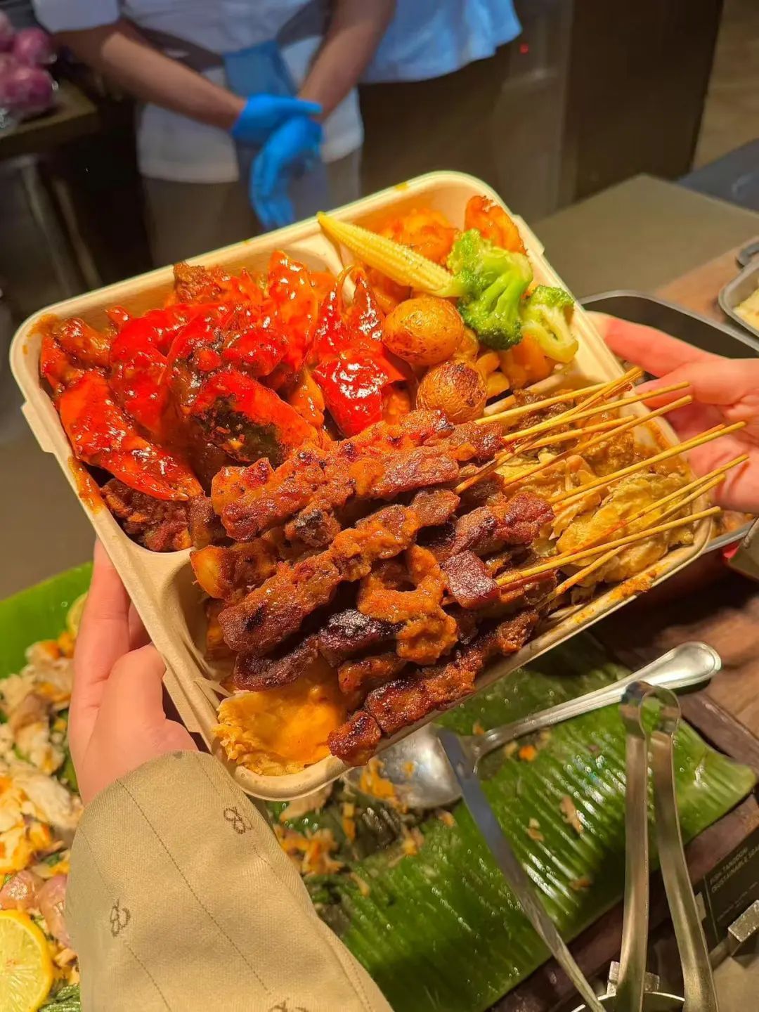 在中国社交媒体上,大家普遍把新加坡酒店自助餐外带业务称为“剩菜盲盒”。但普雷斯顿觉得,更准确的中译版是“吃啥盲盒”。在他看来,这些食物与堂食顾客在餐桌上享用的食物是一样的。